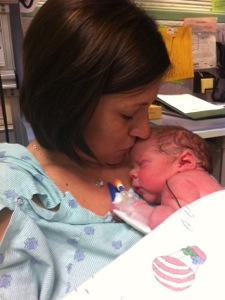 And after two hours of staying in recovery after the section, I was taken up to RNICU for about 30 minutes and could touch him through the isolate (sp?). Best thing though? He was scheduled for a transfer to Ann Arbor at 7PM, so at 6:30 I was wheeled up to say goodbye to him. They took him out and let me hold him… Then the transfer was delayed till about 10:30 PM. I got to hold him for almost 3.5 hours. He just slept contentedly in my arms that whole time. LOVED THAT!