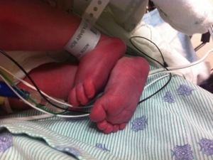 The neurosurgeon also led is to believe both his feet are clubbed. The neonatology nurse practitioner and NICU staff led us to believe this may not be true though. He’s so bent up because of being cramped inside its hard to really tell.