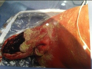 IF YOU WANT TO SEE a very nasty picture of the sac (ruptured) with the spinal meninges in it, you can click here. If you are squeamish though, don’t bother looking.