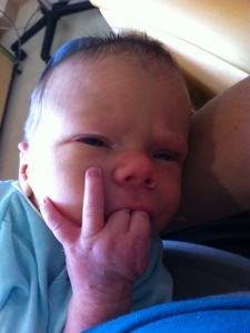 That pretty much catches us up. The rest of today was just full of weighing, feeding, weighing, swearing, feeding, and then tons of snuggles and smiles as Colten spent the most time yet awake and alert!