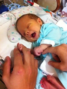 Yesterday afternoon (Saturday), things were going pretty well. I had actually started to nurse Colten the night before and continued to do so Saturday. He was off all pain medications (was on scheduled doses of tylenol with one dose of morphine in there as well) in less than 24 hours post-op. This baffles me, as I am still randomly popping some ibuprofen myself from the c-section. Then a nurse reminded me that he may actually not have much sensitivity back there by his incision and that might be why he’s not in pain. Either way, he’s been off pain meds and he seems to be doing great. He was still groggy through Saturday afternoon but would have some small awake times with his eyes wide open and looking around.