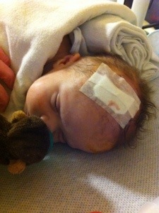 So besides, you know, drilling his skull and probing his brain, we really got some good news today! And by the time Dr. Maher was done with surgery, Colten had already drained out at least 10cc of cerebral spinal fluid. Guess no more Pinky & The Brain costume for Halloween for him…