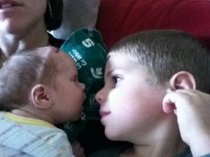Katie, I love reading this journal……………..and I especially love the pictures of the boys loving their little brother. You and Richard are blessed to have found one another years ago…….look at all the fun you’re having now! Love/prayers/hugs………..cuz – patricia o