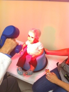 After the dots were all over, Mark scanned Colten with the laser. He LOVED the red light, which made trying to get the images of his backside very difficult! We loved Mark’s lazy-susan Bumbo!
