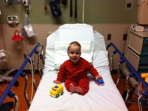 A much-delayed update… All went well with Colten’s surgery. They were able to get in laparoscopically and do part 1 of 2. Part 2 will take place in about six months. Unfortunately part 2 cannot be done laparoscopically due to all the shunt tubing in Colten’s abdomen. So he’ll get a nice long incision straight down from the belly button during that surgery. (No idea what I’m talking about? See our previous post!) He had one minor incident after surgery when one of the laproscopic entry points, which were steri-stripped closed, kind of sprung a leak. We tried re-sealing it with bandages we had but it kept soaking through everything. After a late-night trip to the local ER, he had a nicely sealed incision once again.