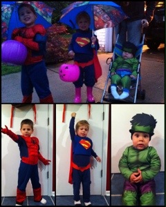 Colten enjoyed his Halloween as the Hulk, alongside Superman and Spiderman. He was not so lucky to get candy. Mean Momma and Daddy.