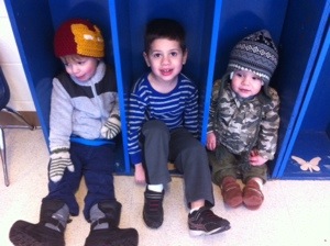 The video amuses me ’cause Colten seems to be more interested in the photographer than what he’s doing. (Is it you taking the pics?) The cubby-hole pic is adorable.