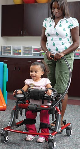 That was kind of the icing on my cake for the day since earlier yesterday morning (I know, I need to write in better chronological order!), Colten had his second PT appointment with our new therapist. Over the past month or so, he has been very fussy at his clinical therapy appointments. Due to ear infections? Maybe, but I had assumed it was due to some other reason – unhappy being there, unhappy with therapist, sick of PT, etc… So not knowing about the ear infections yet, we had another struggle day at PT. He would be engaged for a few minutes then want to cling on me. Back and forth. So it was hard to tell what the issue was because he would go back and forth between being playful, happy and engaged, to being cranky, sad and fussy. Then the PT brought out a gait trainer. I am not exaggerating when I say that the SECOND Colten saw this roll into the room, he BURST into tears. Not entirely sure why, although I’m guessing it reminded him of the mobile stander that he also did not like very much. Jessica quickly removed it from his sight and we went on to other things! Although I don’t blame him. This thing is quite the contraption: