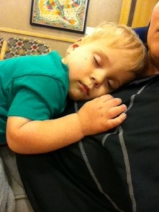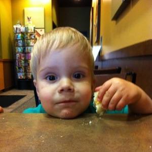 Alright. I think we’re about done. Colten is sleeping better these days (the sleep-study came back crystal clear!), continues to battle ear infections more often than we care to see, but is otherwise a healthy, happy, mischievous, cuddly 19-month old. Who loves bagels from Biggby but could barely hold his head up…
