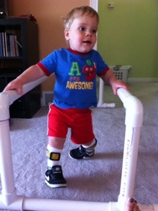 So back to the PM&R entourage. Dr. Green (PM&R), the orthotist, the PT and me discussed his walking and alignment extensively. Their concerns (which were not concerns about 3 months ago when I saw Dr. Green last) lie in that his legs turn in. They aren’t positive if this is a knee-based or hip-based rotation, and depending on where the rotation is originating from, makes the case for what piece of equipment to try next. At one point, Dr. Green wanted to do AFOs, KAFOs and twister cables. The orthotist said she doubted insurance would cover three. So she took off the twister cables. But why KAFOs??? Why MORE bracing?? He is doing AWESOME with what he’s using?!!! She thinks he’ll do even better. He won’t trip up over his feet and the KAFOs MIGHT help straighten his legs so he’s stepping properly. If the KAFOs help train his mind and his body to straighten out, then he may not need them very long. Or, the KAFOs might not help if the rotation is coming from the hip, In that case, she would then want to brace HIGHER up. Grrrr. From my perspective, he is TAKING STEPS, I don’t give a CRAP if he’s rotating inward or outward! HE IS TAKING STEPS! ON HIS OWN. AND LOVING IT. I fear that putting him in bulkier equipment might make him straighter but also might make him more immobile. However, knowing Colten, he’ll figure out how to adapt just fine and will go about his business. The good thing is, she realizes he won’t want to be in the KAFOs all day, hence the new AFOs (he’s outgrowing his previous pair). He’ll use the KAFOs most often during therapeutic activities at home or at PT sessions. The rest of the day the AFOs will suffice. She did encourage us to keep the AFOs most of the day for protection. There are so many reasons for this: because Colten cannot feel much, if at all, in his lower legs and feet, he could get them in a compromising position and not feel the strain of over stretching or being on something sharp, or even another kid falling on him. Because blood flow is reduced, healing time is slow and can bring about other issues if there is an open wound. He leads a fairly protective life currently. We avoid having him crawl over nails and things that might hurt, but we cannot do this forever and eventually he will need to learn to do leg and feet checks every day. Sometimes even the braces cause sores that lead to extreme issues so being aware of his lower extremities is critical to his health.