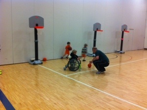 He LOVES playing basketball in and out of the mobile stander! Getting him ready for wheelchair sports early!