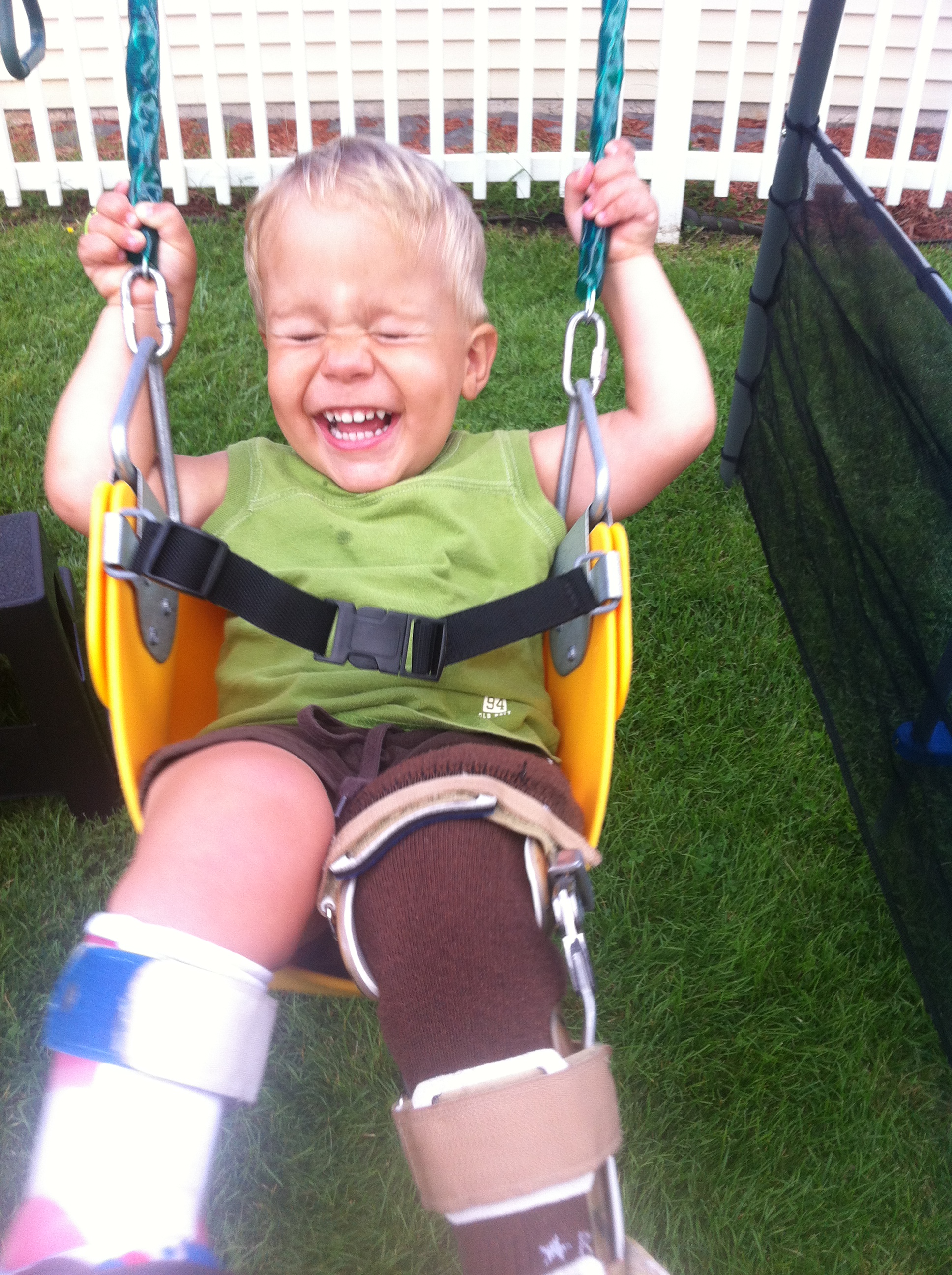 He ROLLED by 8 months of age (typical for children is 3-6 months; I do not say this to compare him in a negative light – rather we are incredibly proud of how he has progressed not too far off the “typical” timeline; we are also not naive – he would not be in therapy 3x a week if he was meeting typical milestones. We also realize that our definition of standing and walking are not going to look the same for Colten as they do for another child. I would say, “he will never walk without any support – bracing or upper body support like a walker/crutches” – but really, with this kid’s determination, truly anything he wants to do I believe he will figure out a way; and he may never want to walk without any other support – that’s his decision, not ours).