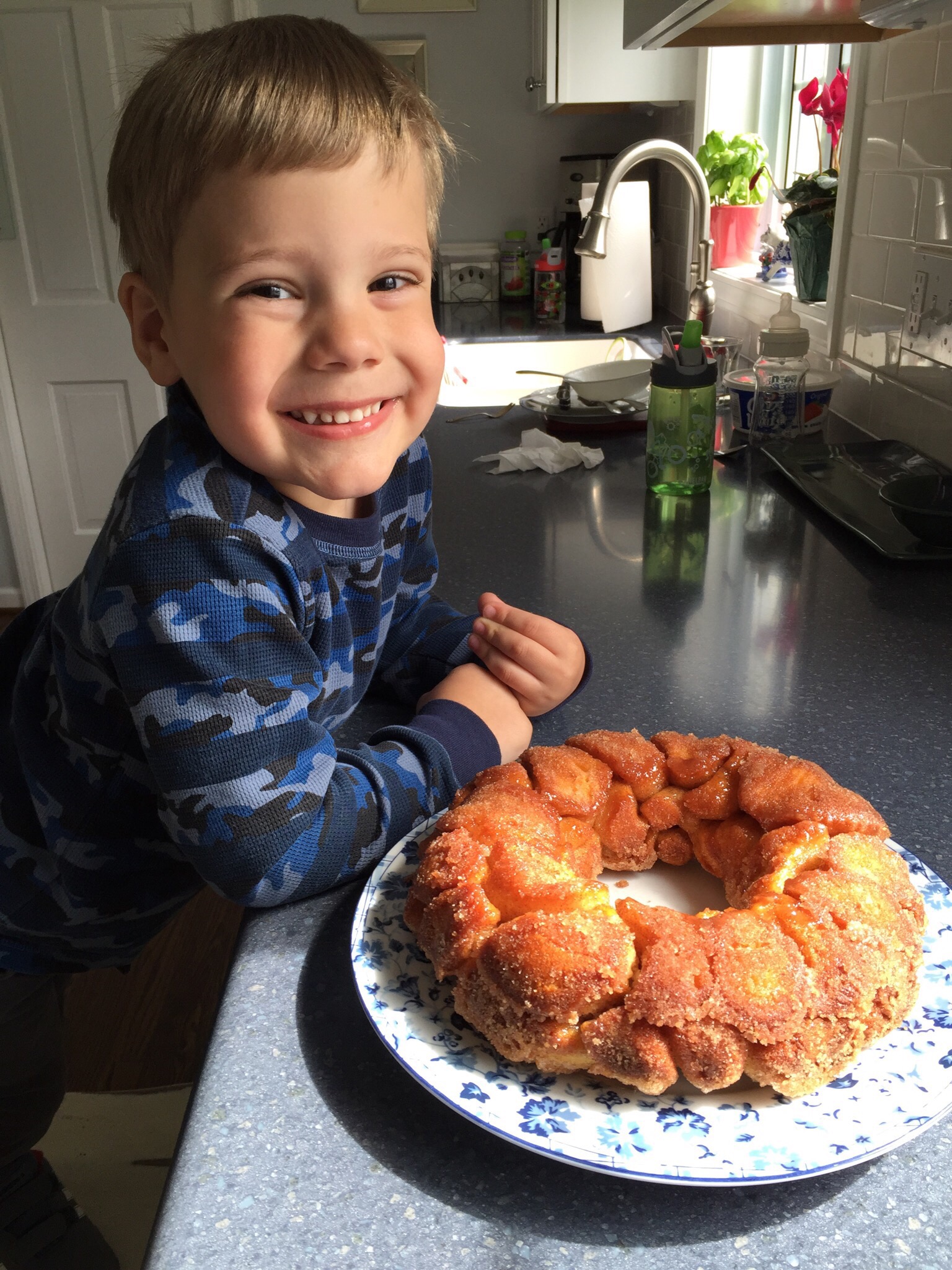 Happy kid after making Monkey Bread with Grammy & Papa