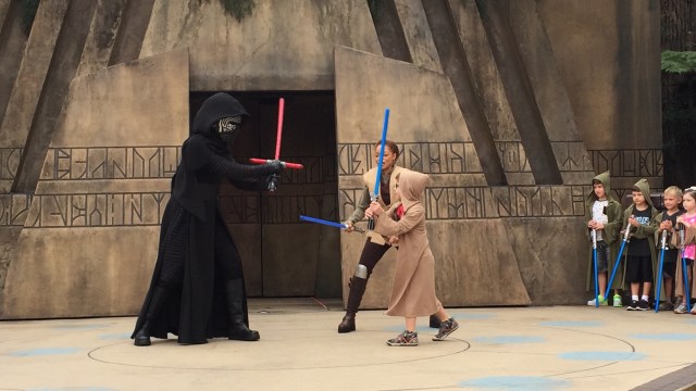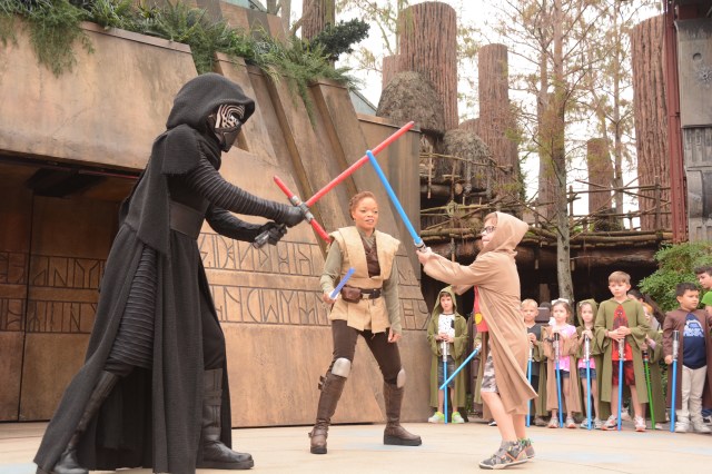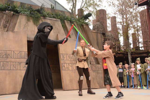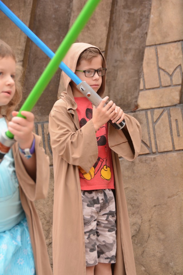 I’m a bit out of order here, because actually, BEFORE going back through the Star Wars characters with Richard, Park, and Max, we had met up with Richard to watch Parker and Maxson do their Jedi Training on the other side of the park. So awesome – they LOVED it! Tons of pictures plus there are two videos included below of their actual light saber fight with Kylo Ren. They embraced this with so much passion, they spent time later in the day passing on their training to Colten and Sophia (pictures further down).