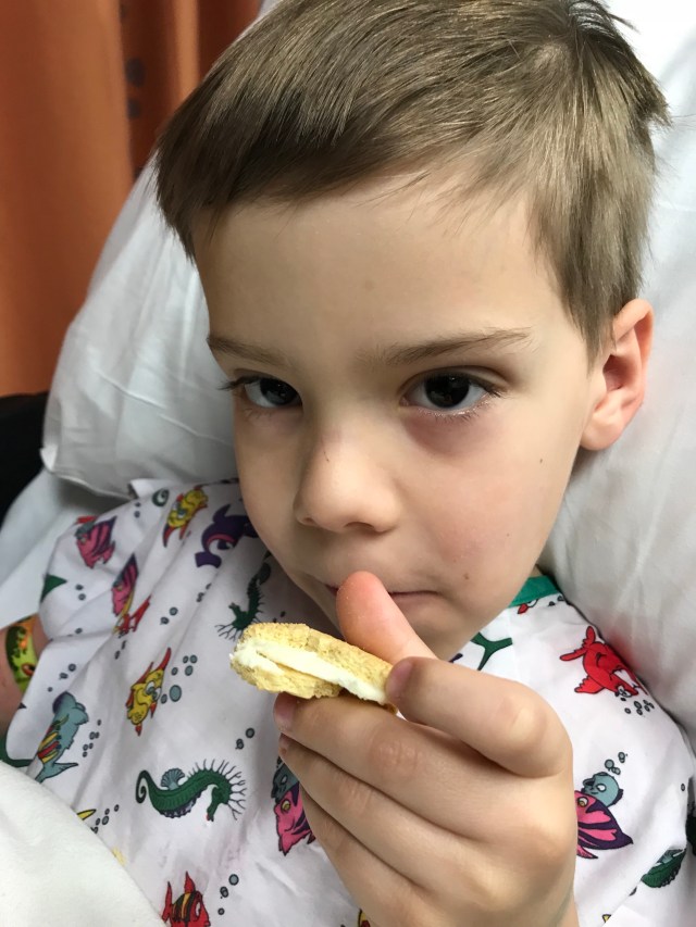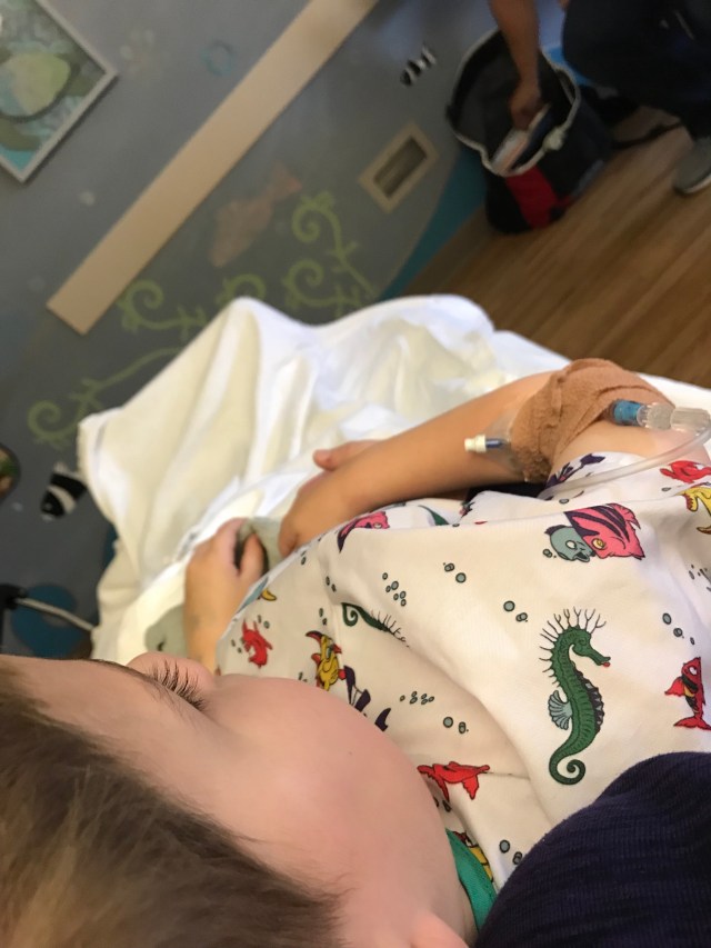 Once in pre-op, Colten remained on my lap, on the bed, through it all. While not a lovely experience, Colten did pretty well with the IV considering it’s a big needle and poke. Such a brave kid. He amazes me that he wants to watch, know what everything is, and wants to understand what is happening. It’s definitely a coping mechanism for him and we find he cooperates much better when he understands what is going on.