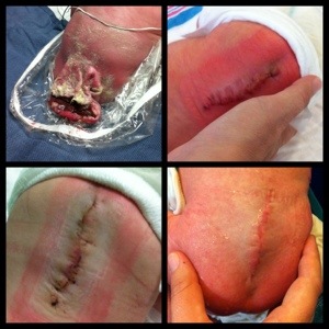 The team came out to our house today to complete some more evaluation including reflex testing and to bring us our infant treadmill and train us in Colten’s daily workout options. He was in a much better mood today and really took some “steps”. What is actually happening is that as the treadmill moves, Colten’s legs are pulled behind him and cause a feeling of imbalance. This makes him want to regain a sense of balance and pull his legs under him or more forward. Because he has quad movement and strong hip flexors, he can do this. More so on the left than the right. His right leg tends to drag behind him quite a bit and doesn’t bother him as much. This could be due to a more severe lack of sensation in that foot/leg compared to the left side. But he does pull the right forward a couple of times.
