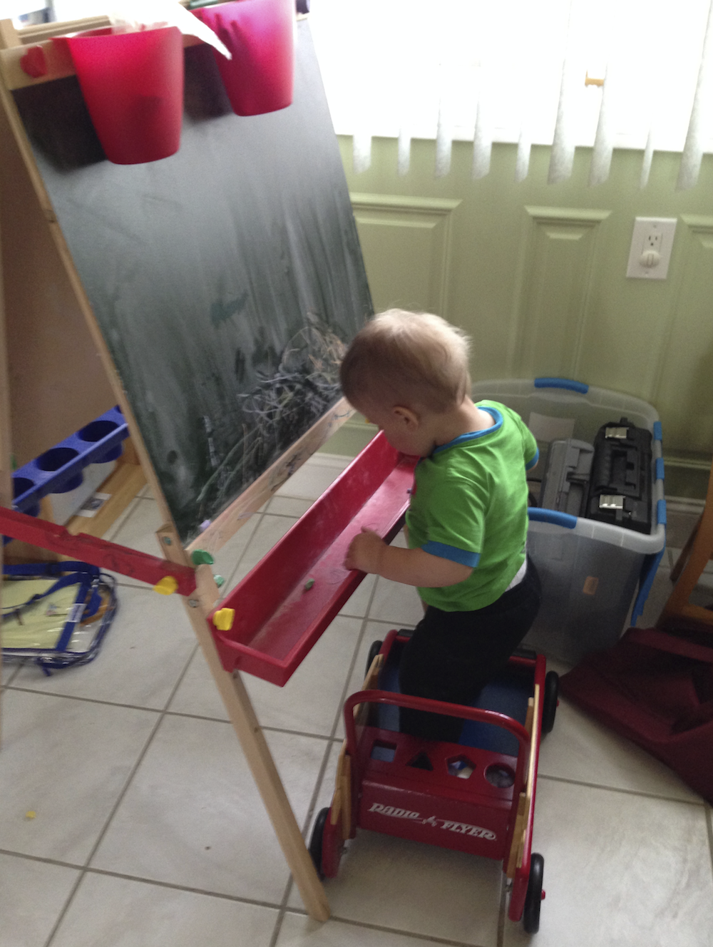After getting lunch, we rolled up to the Myelo Clinic. Colten spent a huge part of the morning and early afternoon in his mobile stander and LOVED IT. I have to say, after such a rocky start when we first got it, after about a week, he never screamed getting into it and actually has fought me a couple times when I’ve had to take him out of it. This is HUGE because if he can tolerate being in it, it will help his bone density improve, help him strengthen various muscles used in standing, and keep him familiar with maneuvering a wheelchair.
